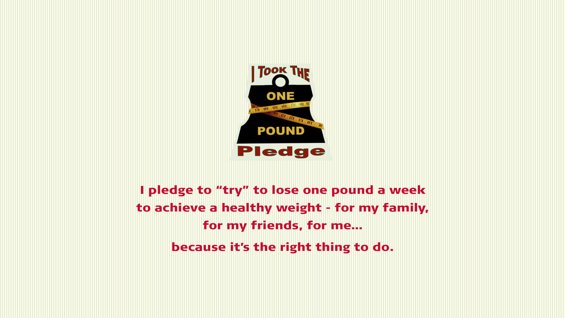 I pledge to "try" to lose one pound a week to achieve a healthy weight - for my family, for my friends, for me... because it's the right thing to do.